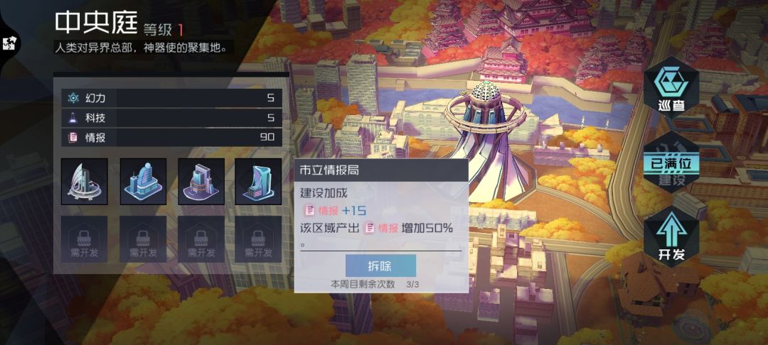 堆情报可以中央庭5☞30神器使☞一个地下研究所☞一个市情报局☞一个大型情报,正好90(巡查完没意外还能剩下6小时)