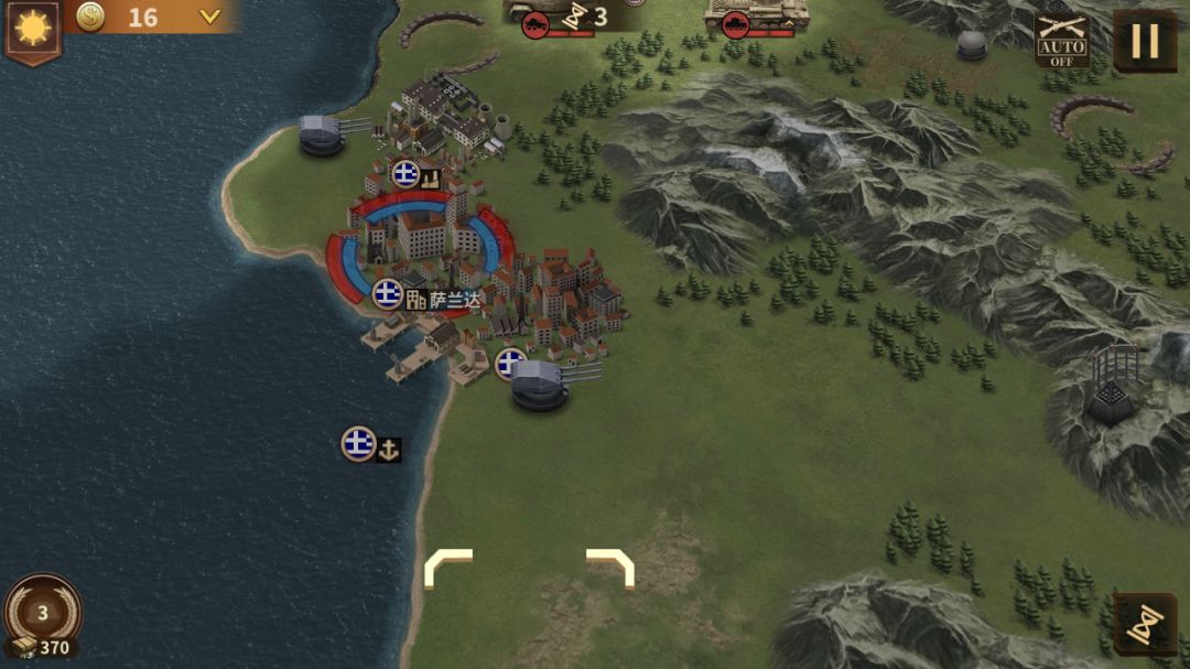 这是一个我还没试过的计划,不跨海从陆上转个弯先打帕特雷(因为完美要求20回合打掉帕特雷),然后在关卡极限时间28回合内打掉雅典,有时间再试试。