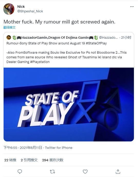 据外媒爆料,开发了《血源诅咒》与《恶魔之魂》的FromSoftware社将再次与索尼合作,开发一款魂类PS平台独占游戏。游戏将不是《血源诅咒2》,而是一个全新的IP。而曾准确爆料了《对马岛之魂》「壹岐岛」内容的推特用户Shpeshal_Nick也对此表示了肯定,并且他表示具体消息将于8月19日举行的「StateofPlay」直播上公布。如果此事属实,那么我们可能很快就会看到索尼宣布举行「StateofPlay」直播的时间。