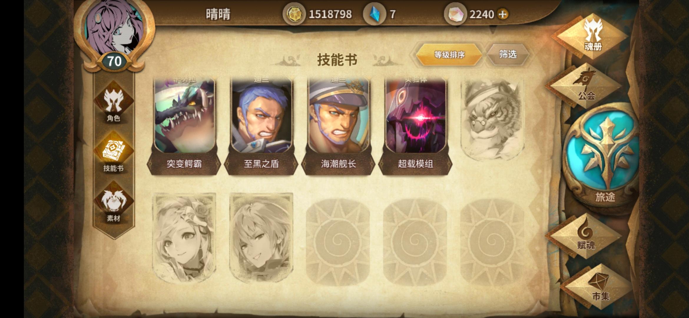 攒了将近6k蓝碎把夏尔奥斯塔和豹姐的技能书买了(虽然相比4k蓝碎的书签礼盒是有亿点亏),看起来舒服多了