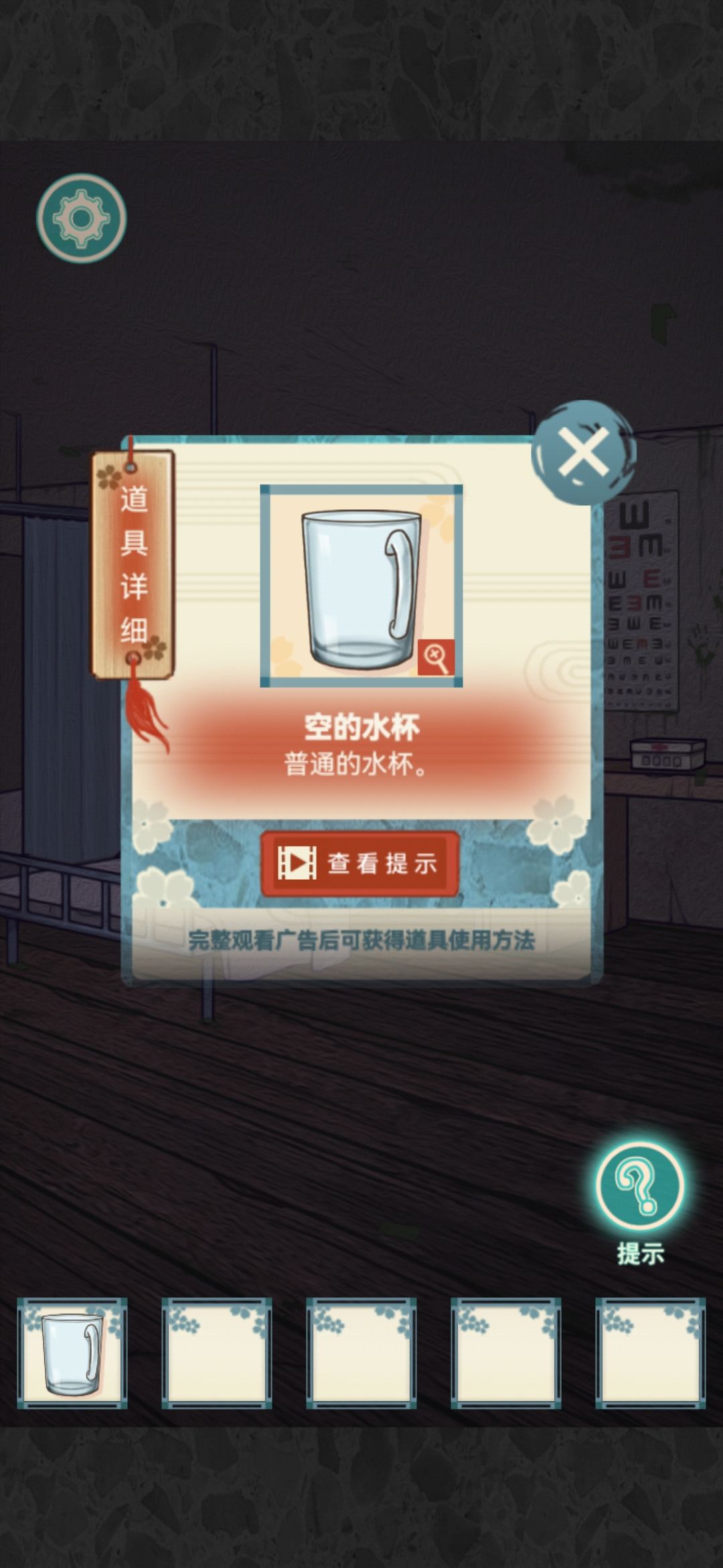 2.根据被涂改过的视力表“左右左下”打开桌子上的医药箱,获得麻布和玻璃药瓶