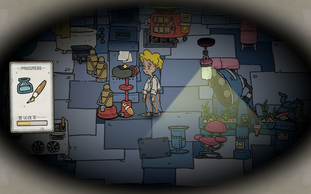 我们从电影中学到了什么?当然是主角的“超能力”啦。不过在《巴别号漫游指南》里,这个“超能力”是以一种全新的面貌——改写模式——来呈现的。在舞台中,我们可以随时进入改写模式,决定对画面中的某个对象进行改写。但是,只有个别对象会响应玩家的改写操作,显露出隐藏的交互选项。这时选择新出现的选项,就能触发蝴蝶效应。