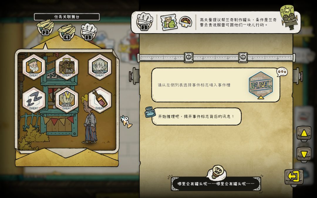 如果你还不清楚“蝴蝶效应”和《巴别号漫游指南》有什么联系,那就让我先来介绍一下游戏的玩法吧。我们的游戏共有共有四个主角,每个主角都有各自的舞台。玩家将分别扮演不同的主角,体验不同视角下的故事线剧情。在部分舞台中,我们会收到游戏任务。为了完成任务,我们可能要前往其他舞台,寻找能改变当前舞台的剧情点,触发蝴蝶效应,改变历史。