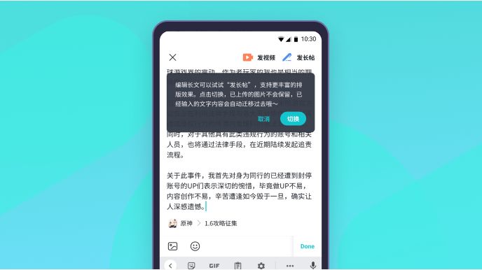 当内容符合发长帖标准时,系统会提示切换,提升编辑&阅读的双向体验