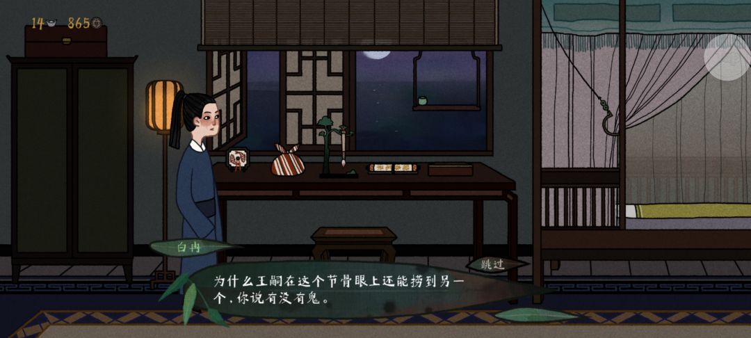 11.根据攻略最后南师爷给你提供了一个王家根本没有老家的说法,可以拿那条线索去找王嗣对质,之后在客栈与宝镜讨论,王家的阴谋就出来,没有什么重要的线索,只是个开导性剧情,好奇的可以看看