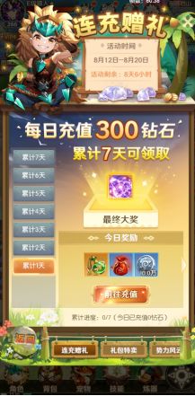 累积充值100元,连续海量奖励7天领不停。