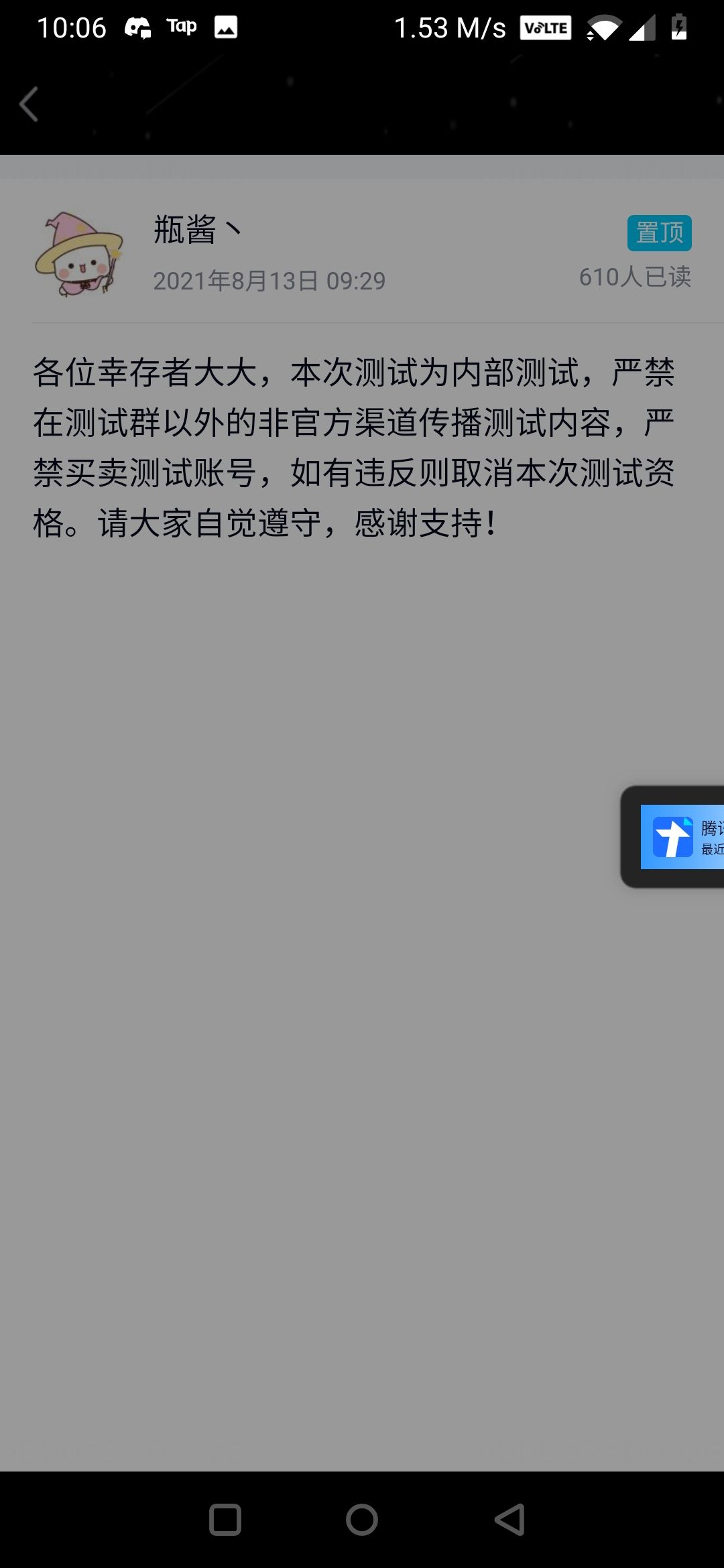 这次测试有保密协议