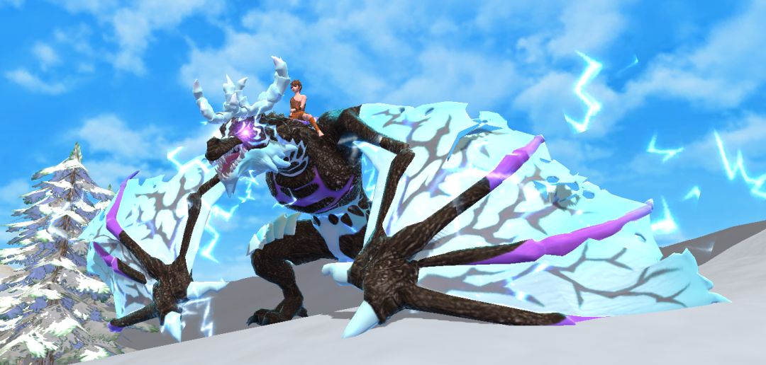 “惊雷呼啸,神龙降临,伴随震耳轰鸣的雷声,高傲的王者在天岛之上翱翔。“惊雷头上长有冰蓝色角,通体黝黑伴有紫色雷电光效纹路。巨型翅翼触地,起飞后双翅振舞,霸气威武,双眸还会闪烁亮紫光芒,仿若所到之处皆有电闪雷鸣。