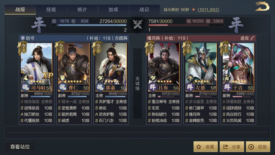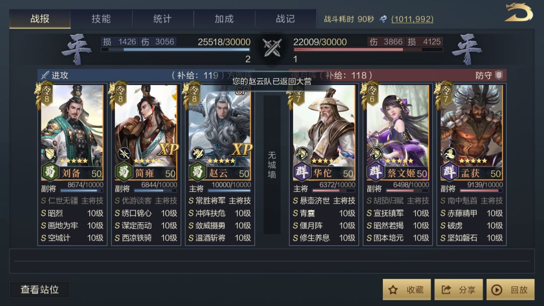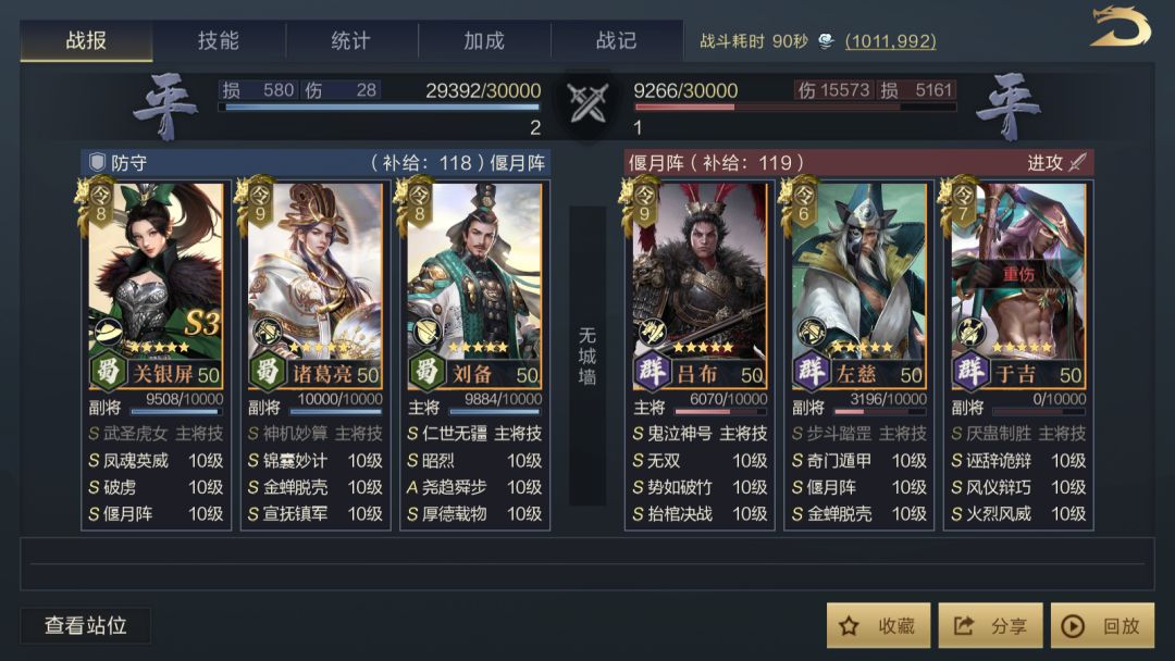 为了公平起见,除了获得名次奖励的主公能够展示完整战报以外,所有参赛队伍的战报也会在下方公布,主公们可以点击查看,或许能从中收获到些许思路也说不定哟~