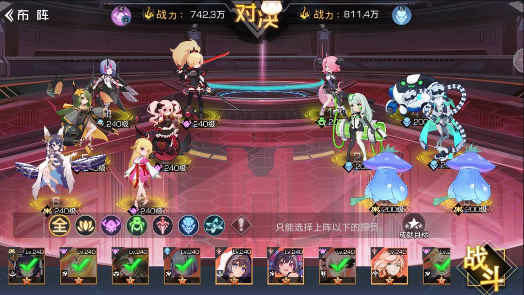 本关主要难点在于没有治疗探员提供一个可观的奶量,因而条件一达成相对困难,最后确定阵容,使用三战士前排、高伤伊丽莎白、增伤天启,成功获得三星,存在较小失败率,请探长们耐心尝试~
