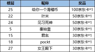 参与有奖版4位,奖励30京东卡*1。(官方随机抽选4位参与者发奖)