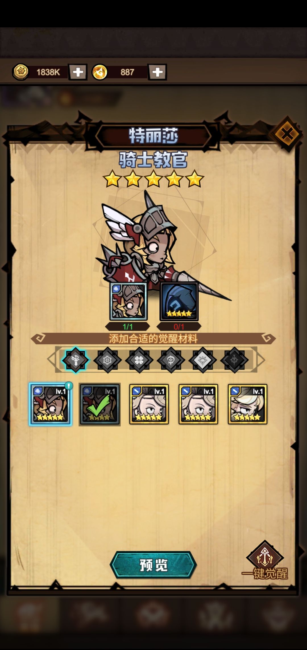 银卡消耗:1本体(四星)+1五星
