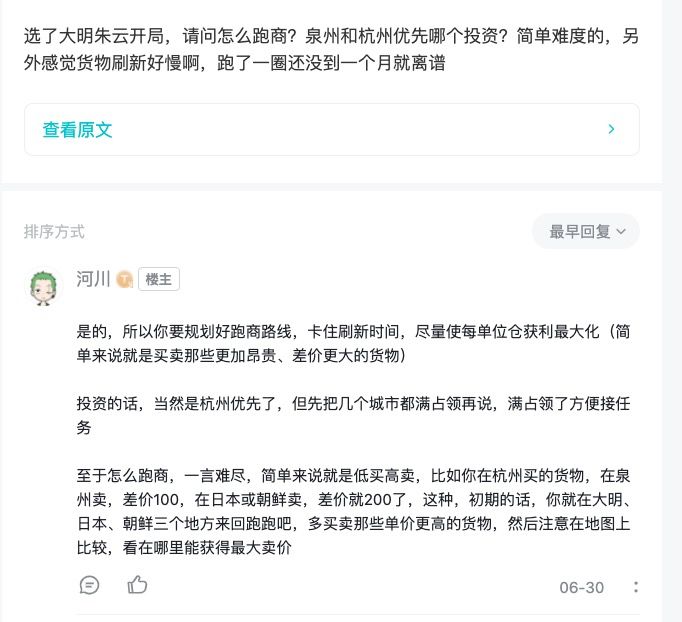 朱云:开局东亚大明,附近城市不多,但商业发达,npc势力也少(就日韩两家),开局跑商很舒服,附近可招募的船员不多,但每个都很强,专属船员是个能讨价还价的水手长,讨价还价这个技能的价值极高,是游戏独一份的能影响交易最终卖价的技能(其他会计什么的都是只能影响买入商品的价格),自身天赋是提升船员经验获取和城市投资的,对于跑商、战斗都非常友好,是非常强的一位主角~(开玩笑,我大明主角,那必须强无敌!)