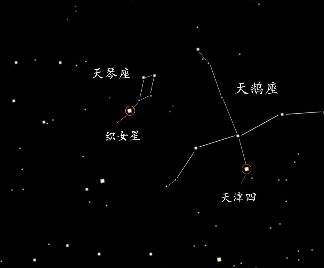 游戏里有天琴座和天鹅座,所以织女星和天津四也是很明显的,但是天鹰座就不在屏幕内啦。