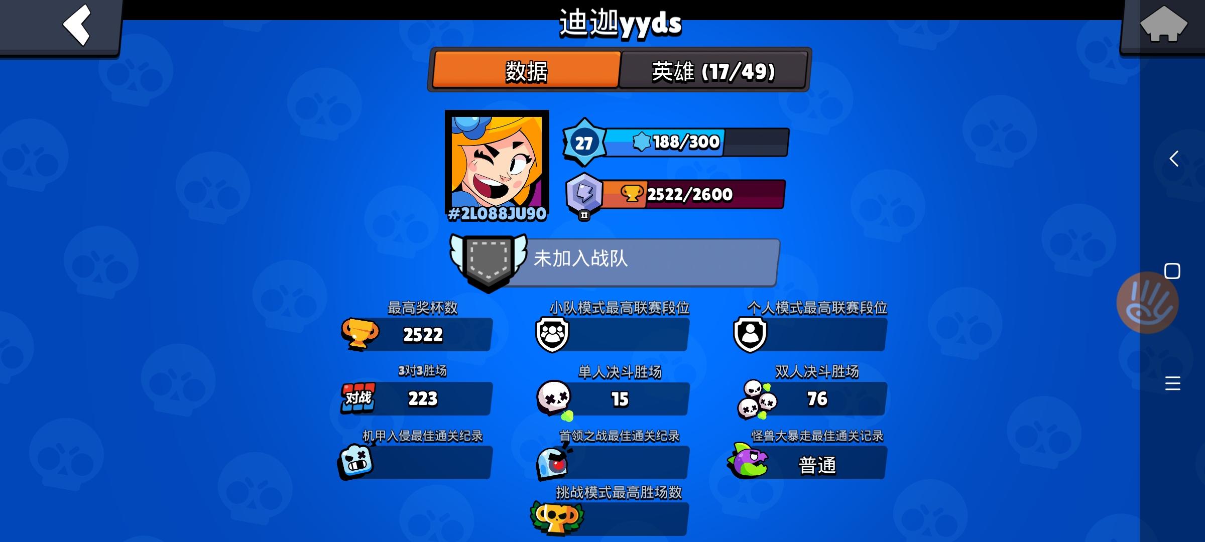 第二次在宝石模式,那局被别人侥幸赢了,因为我们刚好处于上风,最后艾魅打加杰西,瑟奇捡漏刚刚好10颗宝石。最后输了。
