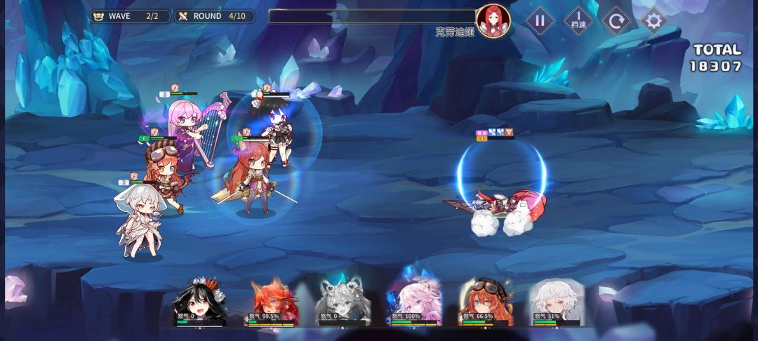 站位如图(巡音别放中间boss不吃魅惑),第一波自动,boss波技能顺序:巡音大,水母大秒3,初音大4或5降攻,丽莎大1压血线(有可能大到4、5那就重开),莫妮卡大秒1,水母自动打掉中间的治疗,这样敌方后排全灭,我方后排满血,要是你家巡音出魅惑就基本稳了。(巡音跨战yyds)