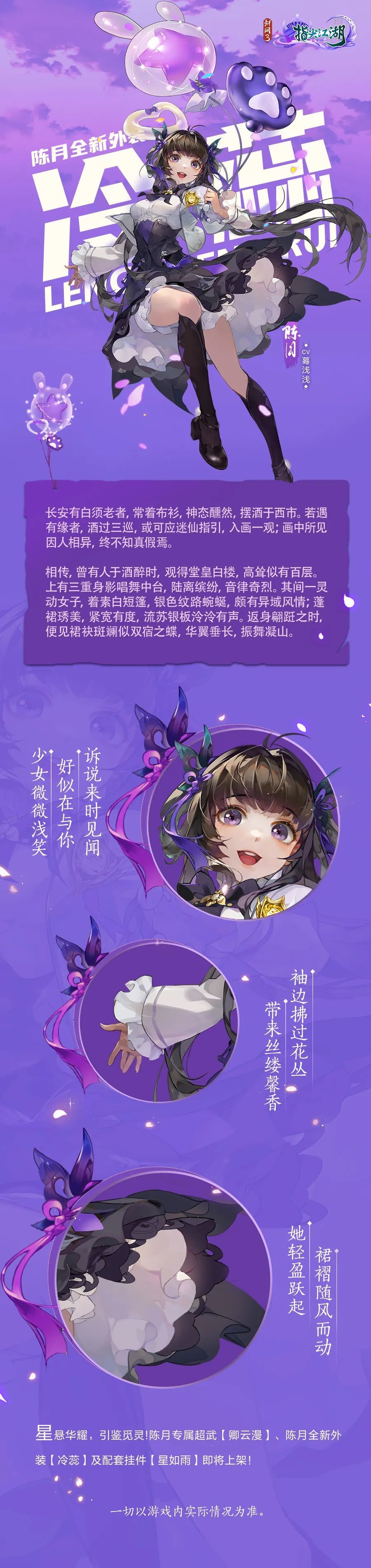 ⭐8月13日19:00~8月15日22:00,侠客陈月外装【冷蕊】、超武【卿云漫】及其配套挂件【星如雨】限时限量抢购开启!戳这里查看活动详情噢~(๑•̀ㅂ•́)و✧