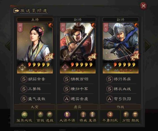 本期内容要给大家说一套非常适合平民玩家使用的阵容,最关键的是三个武将都非常平民,很多玩家在S1-S2赛季就已经凑齐了,甚至出现了多红度的情况,同时战法也不用军民草船这类顶配,适合满红大佬娱乐。