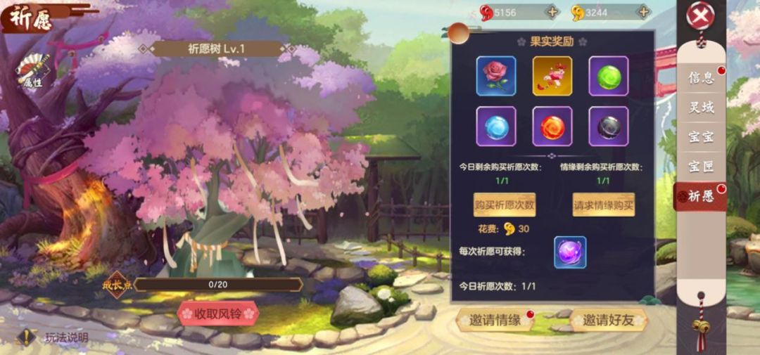 为了增加每一对情缘之间的感情,《云梦伏妖录》贴心地为玩家们设计了超浪漫的情缘祈愿玩法。成功缔结情缘的你们,将会共同孕育一颗属于你们的祈愿树,收获属于你们的爱情果实!更有许多丰富祈愿奖励为彼此增添甜蜜!