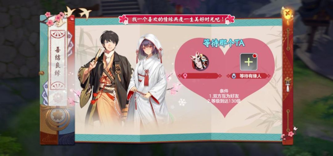 遇到了自己的真命天子不敢主动出击?一见钟情却苦于没刷好感?在《云梦伏妖录》里这些完全不是问题!《云梦伏妖录》的情缘系统不需要玩家辛辛苦苦刷友好度,只要双方等级达到130级就可以开启情缘系统,互为好友即可一键发起结缘邀请!