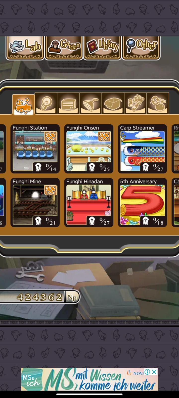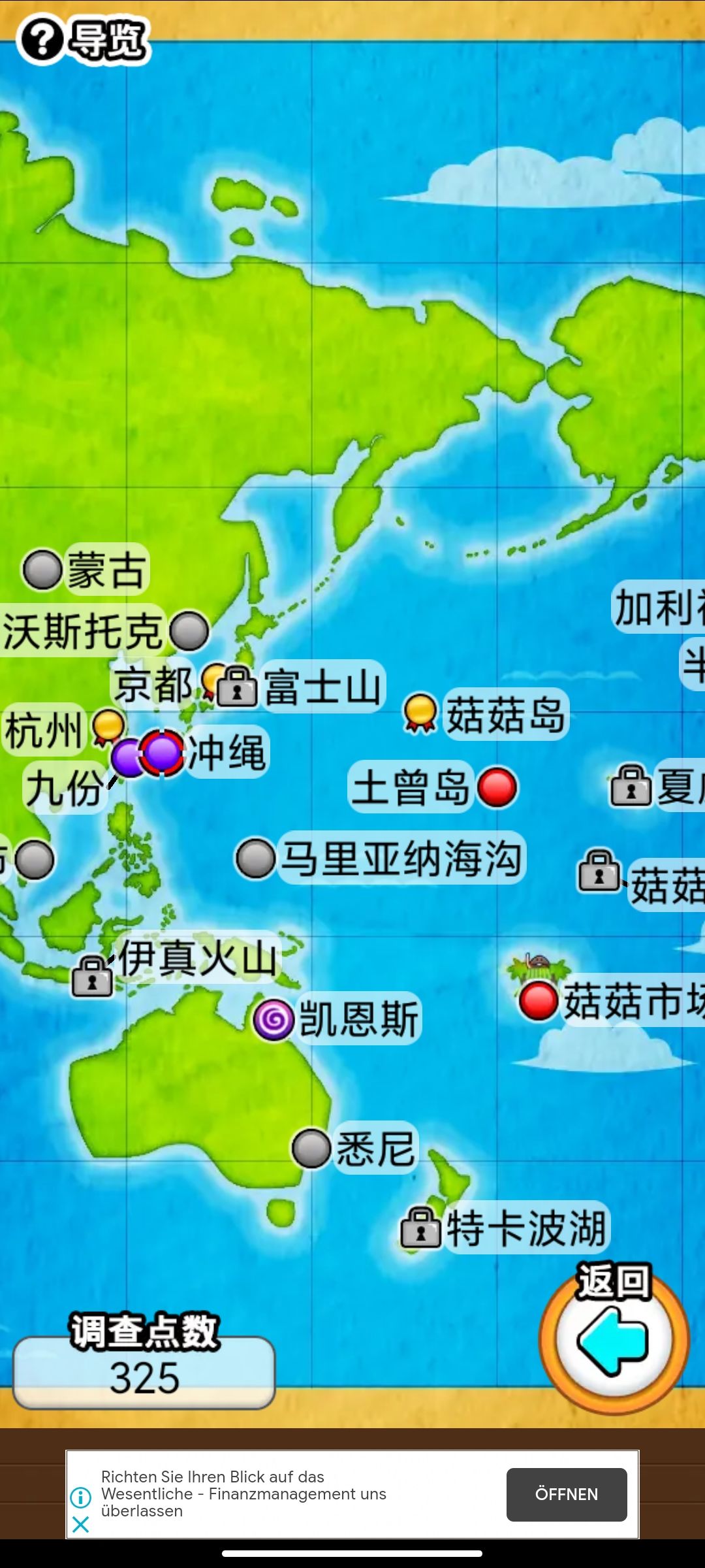 菇菇World:有不同地图场景,每个地图分别大概十余种菇菇,收集足够多的菇菇可以升级地图等级然后长出更稀有的菇菇,通过收集足够多的菇菇获得调查点数解锁新地图,操作性比较差就是单纯的上线喂食划划划然后关掉,喜欢程度排最后。