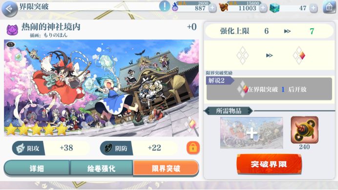 和角色一样,绘礼也可以突破,突破后会解锁新的解说以及强化等级。突破满后会有额外效果。