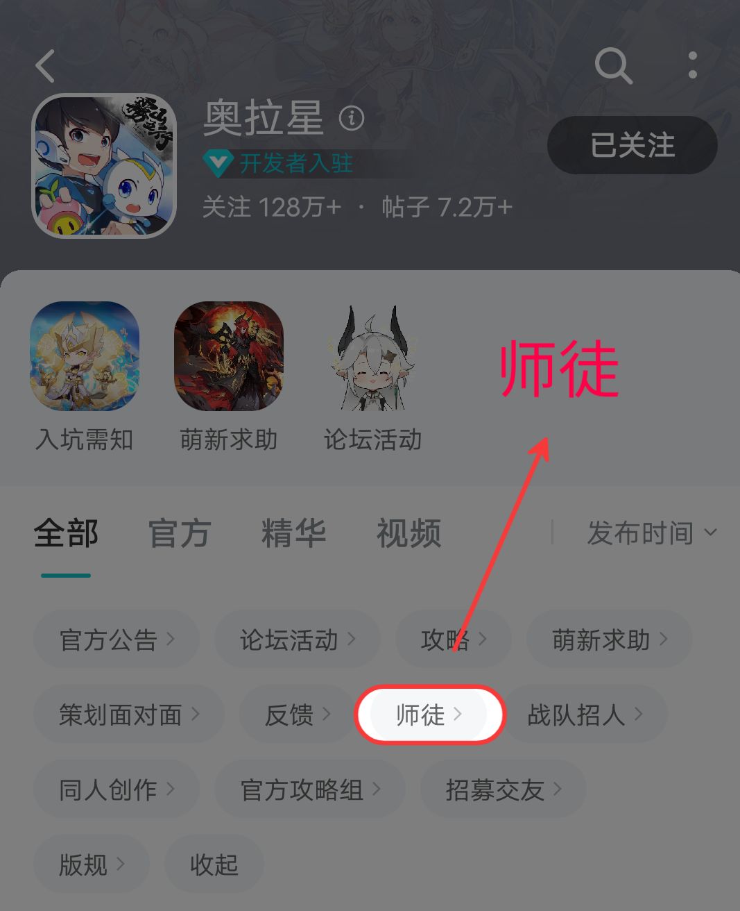 1.如果想找师傅或者徒弟的小奥拉,可以去这个版块里找
