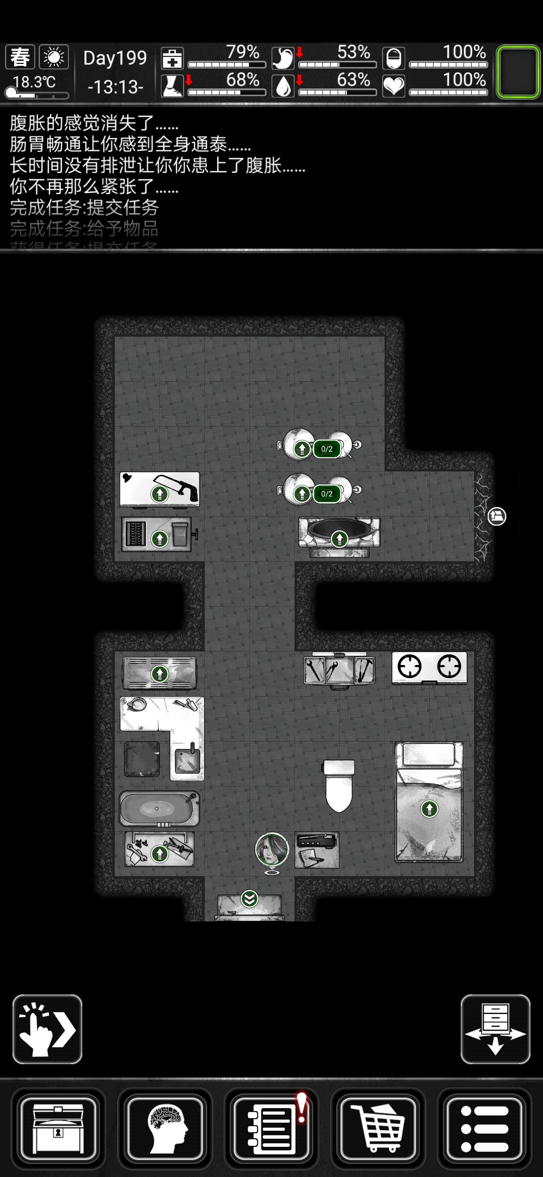 活下去作为一款生存游戏,其内容与现实息息相关。所以里面的角色也是要吃喝拉撒的,但我们可以通过自己的体感判断生理需求,而角色则需要通过查看状态栏来满足生理需求。