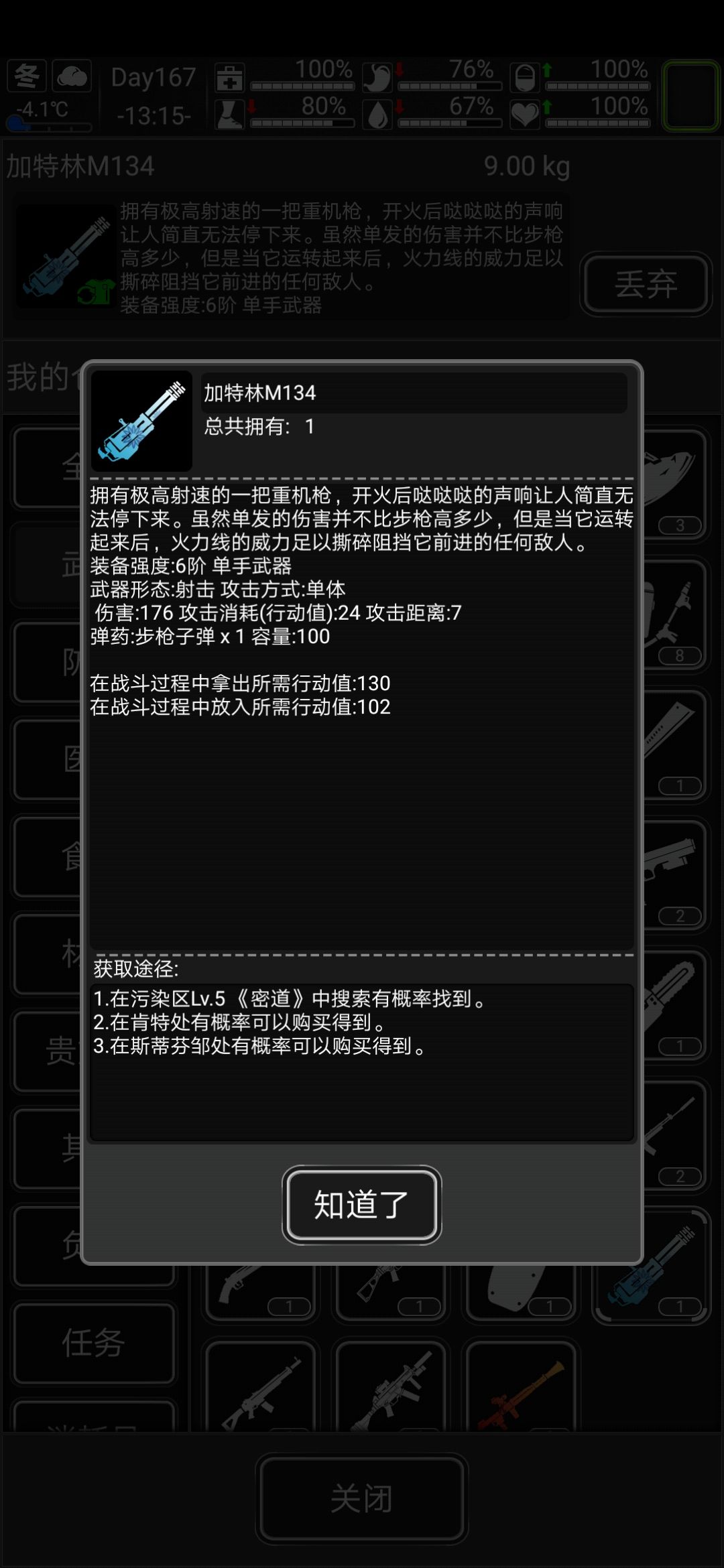 【斯蒂芬·皱】售卖武器,药品,防具。喜爱,丧失血液,酸性血液和证明。血液在他那里四倍价值。(120天概率刷加特林,150概率刷blt和rpg,肯特差不多也是这个时间;180概率刷骨骼套装)