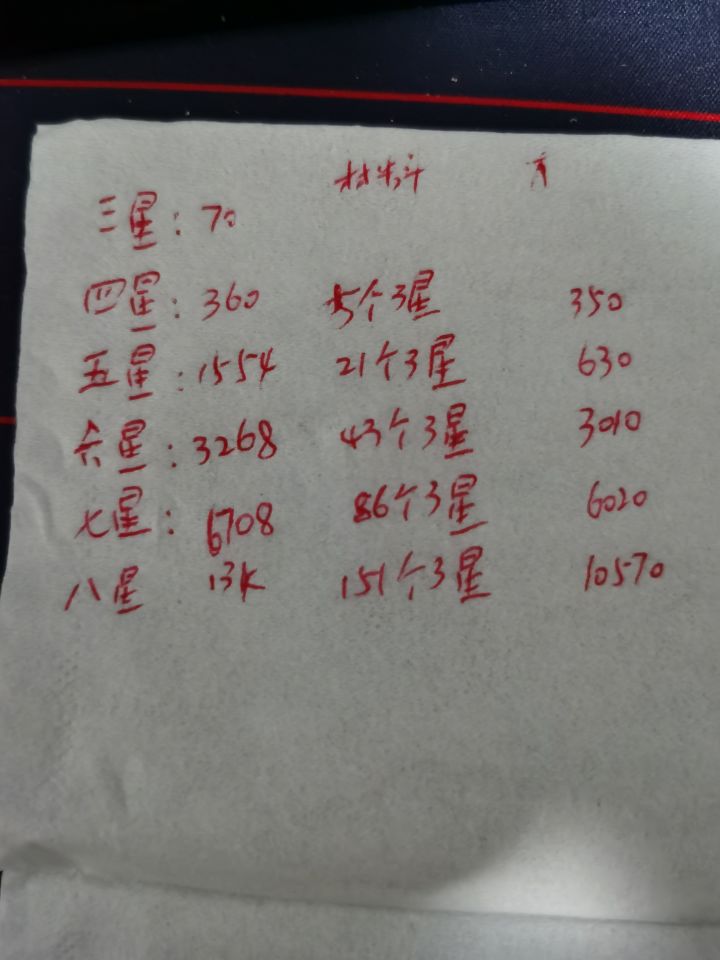 然后根据这个遣散效率可知星级越高,亏的越少。图中最后一排是直接遣散三星所获得的币。虽说这么操作所获得的收益也没这么高,但是对于0氪和微氪党来说这么操作还是有不少好处的。至少升到七星再遣散比直接遣散差不多多出700币。又能多换7个三星狗粮😂😂
