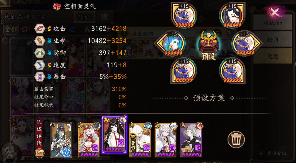 主阵容都是一套:千姬+帝释天+面灵气+晴明+紧那罗+蝎女(面板放在最后)