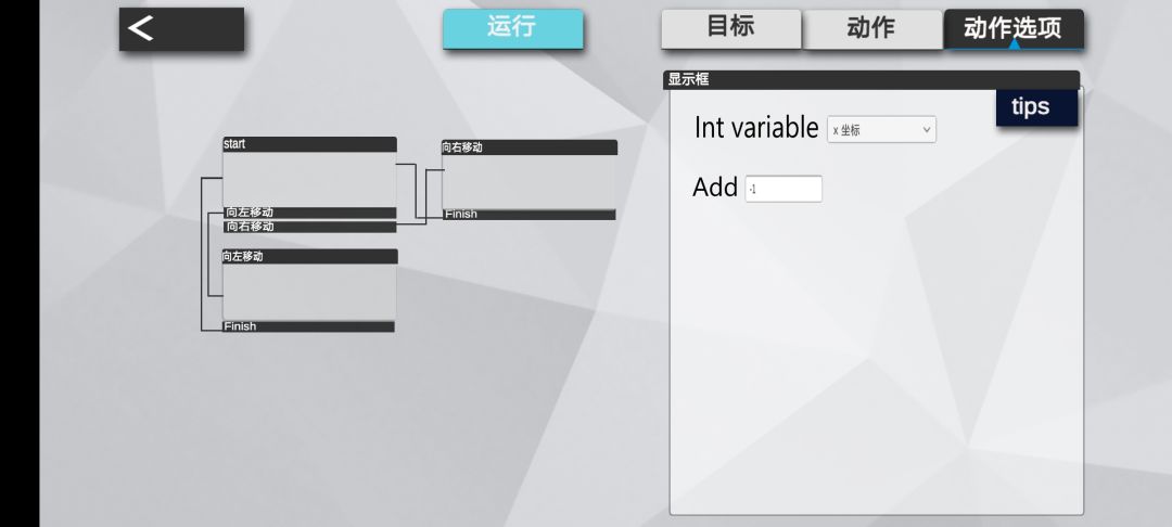 第三个,start,动作,选择一个按键,动作,更改为右侧,向右移动,左侧移动,更改为负数