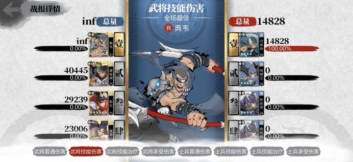 典韦这个伤害是咋回事?推图到第二回合只剩自己了了,一个背水一战好像打出了成吨的伤害?