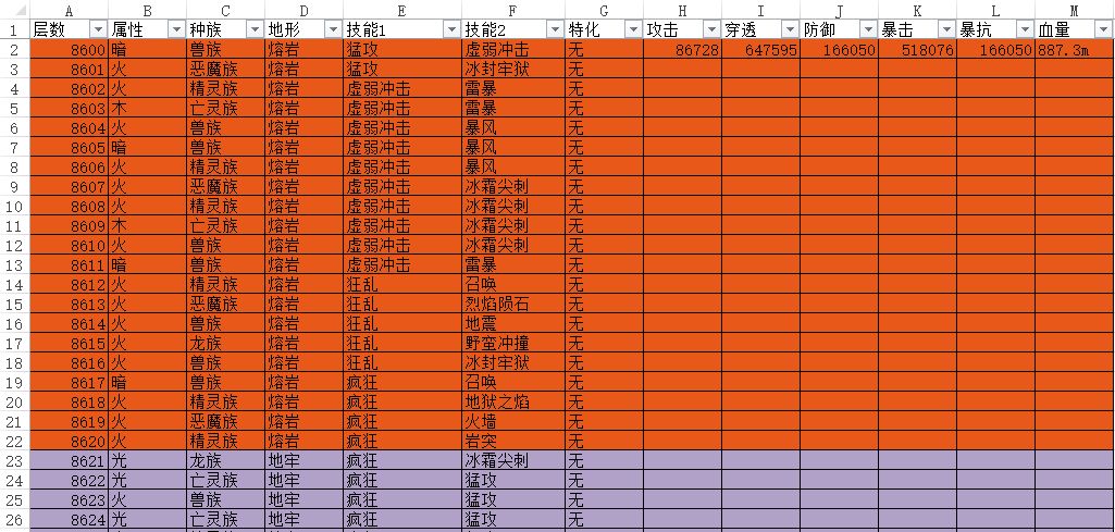 r4地图每2000层一次循环,本记录贴对600-1104 2600-3104等楼层也适用,仅有boss属性数值上的不同