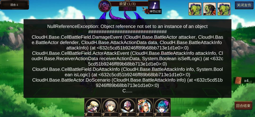 1.两张报错时的截图 弹窗文本 和点掉弹窗文本时战场的一览