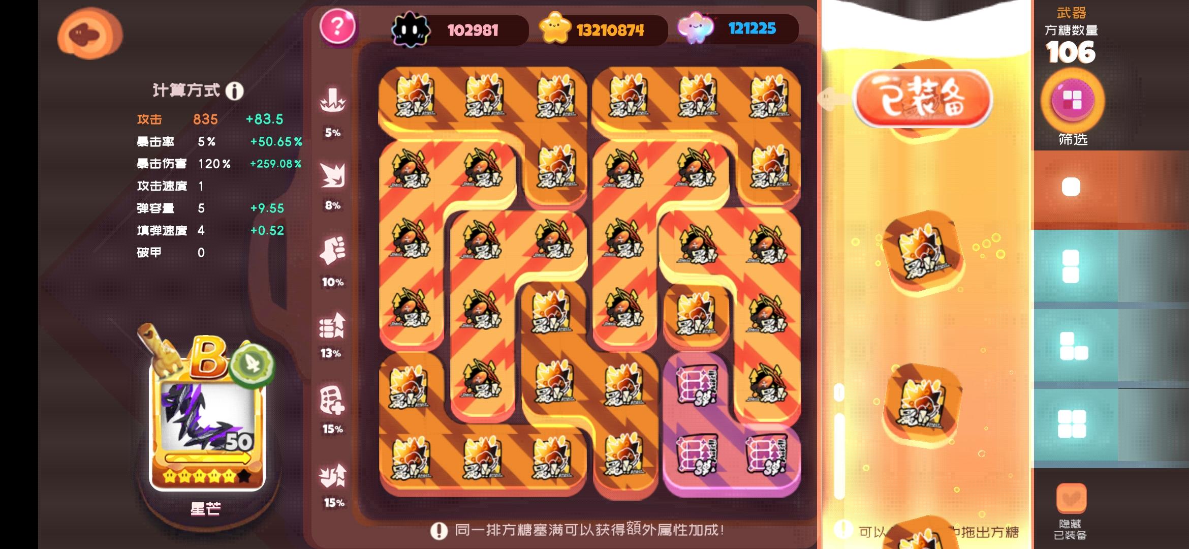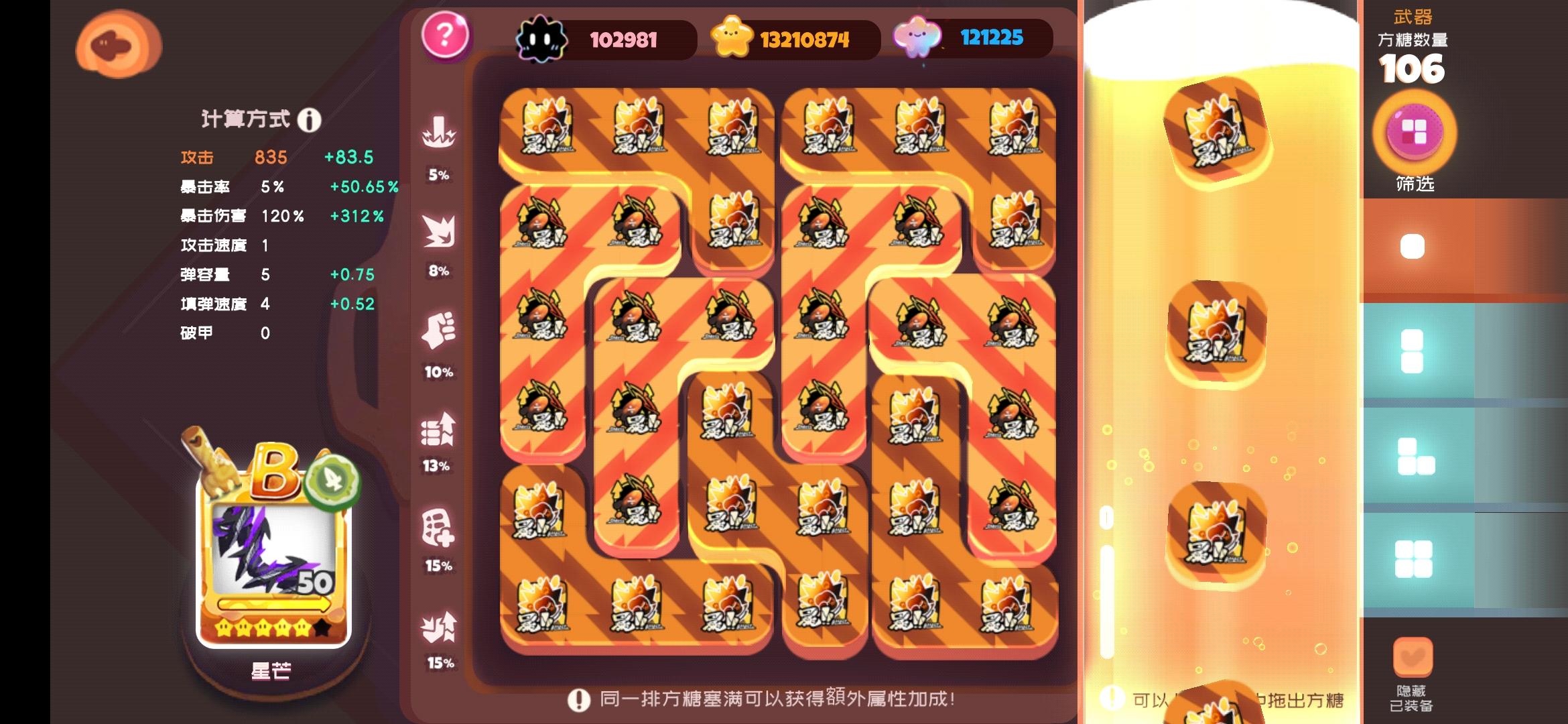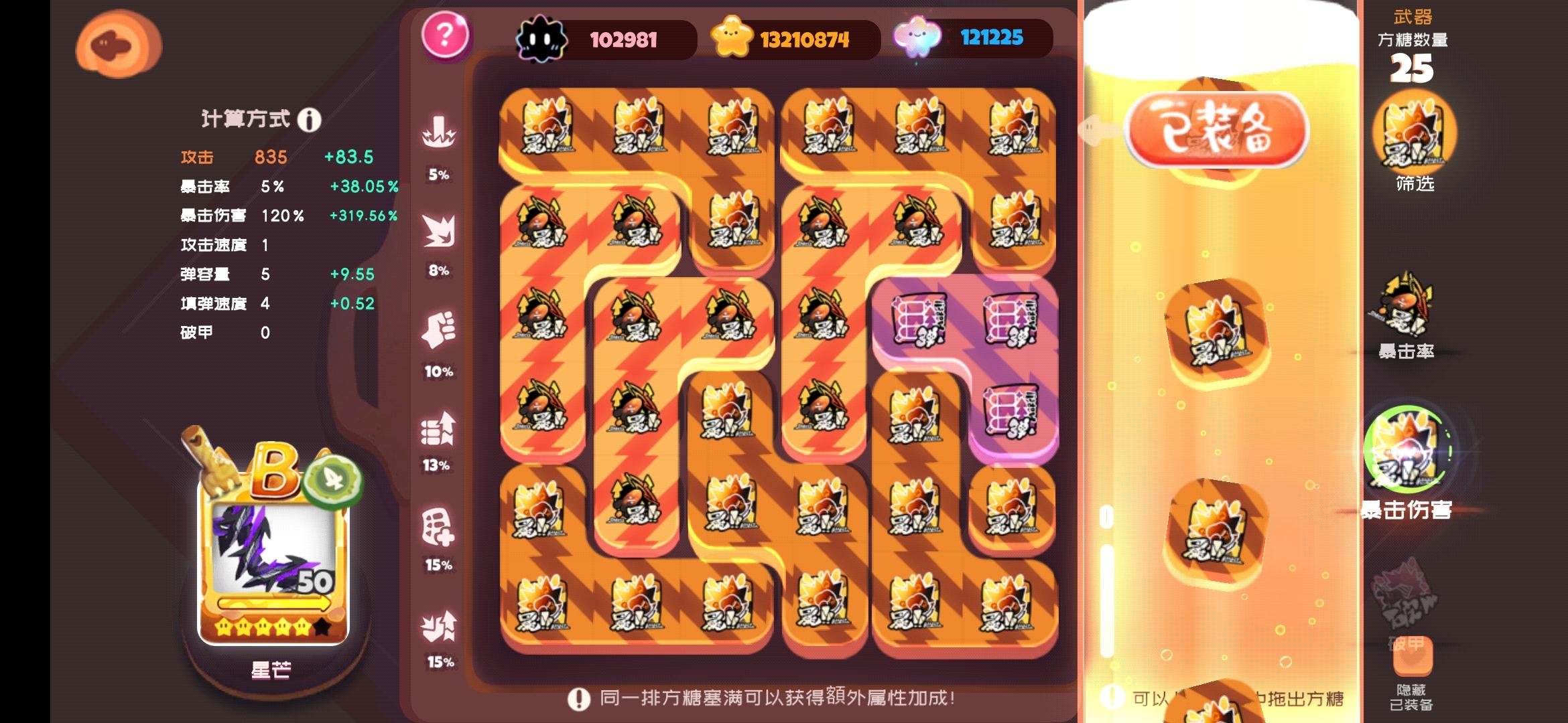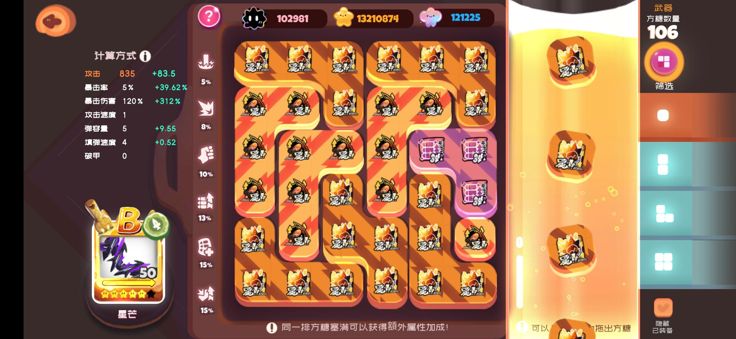 1.五爆伤三暴击+一个三阶扩容+一个暴击糖。