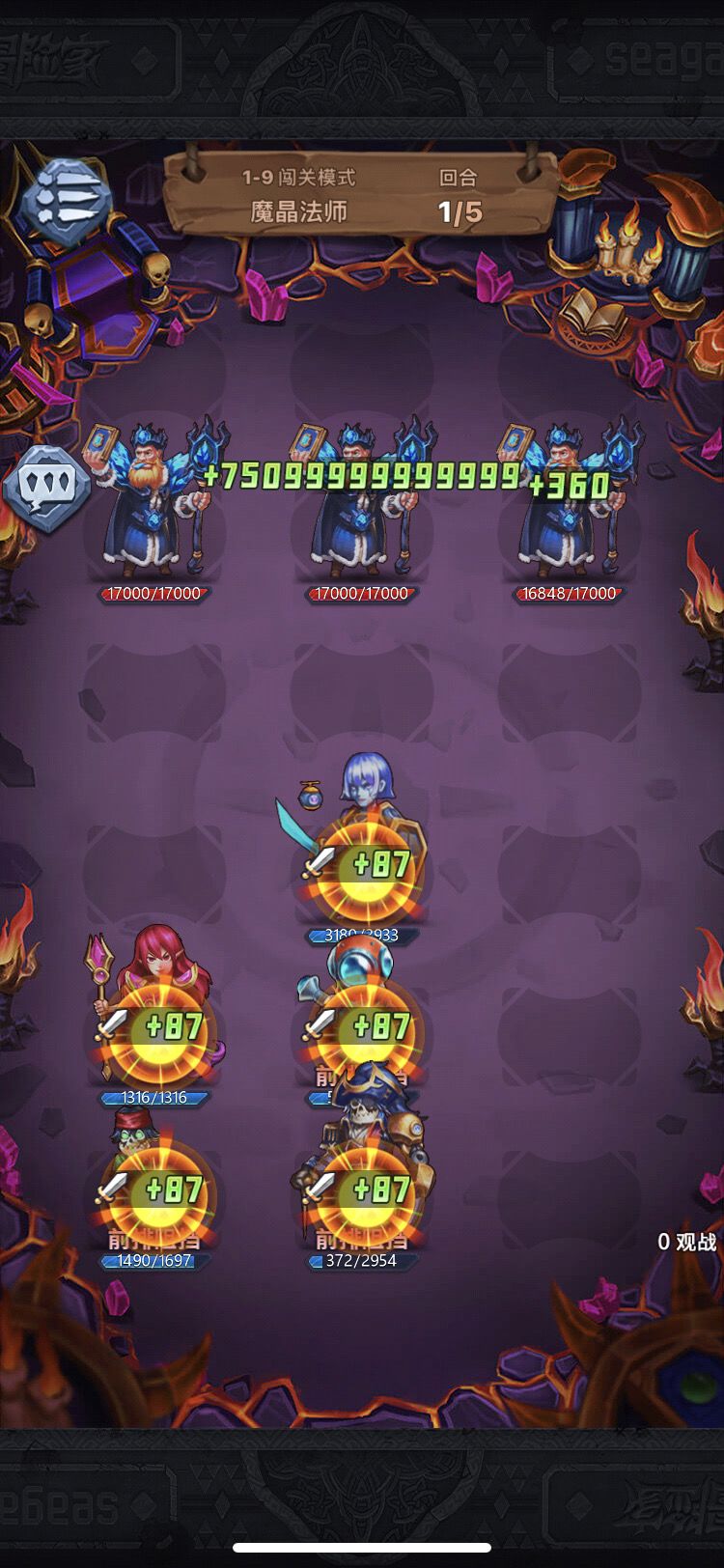 才第一回合。就回血75999999。 秒不掉17000的血。