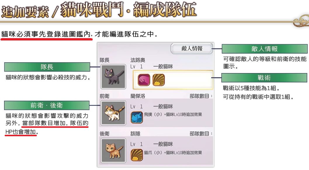 ①只要将猫登录到图鉴,它就可以参与战斗升级