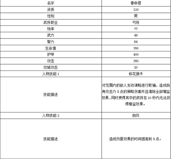 《七雄纷争》武将介绍-春申君