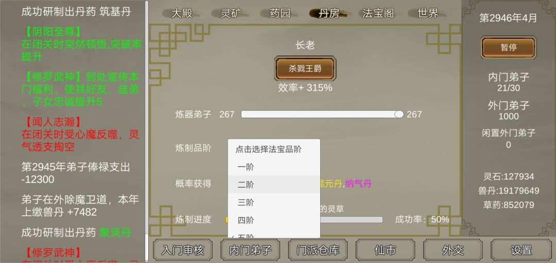 就是这个游戏也比较简单,可是为啥丹药和兵器到五级就拉不下去,没有大乘丹和六级兵器吗?