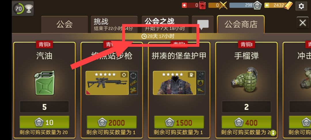 另外,公会之战汽油,娱乐盟没有必要买。但是请参加了工会战的同志,尽量清理自己能清理的丧尸。。把攻击次数用光。。