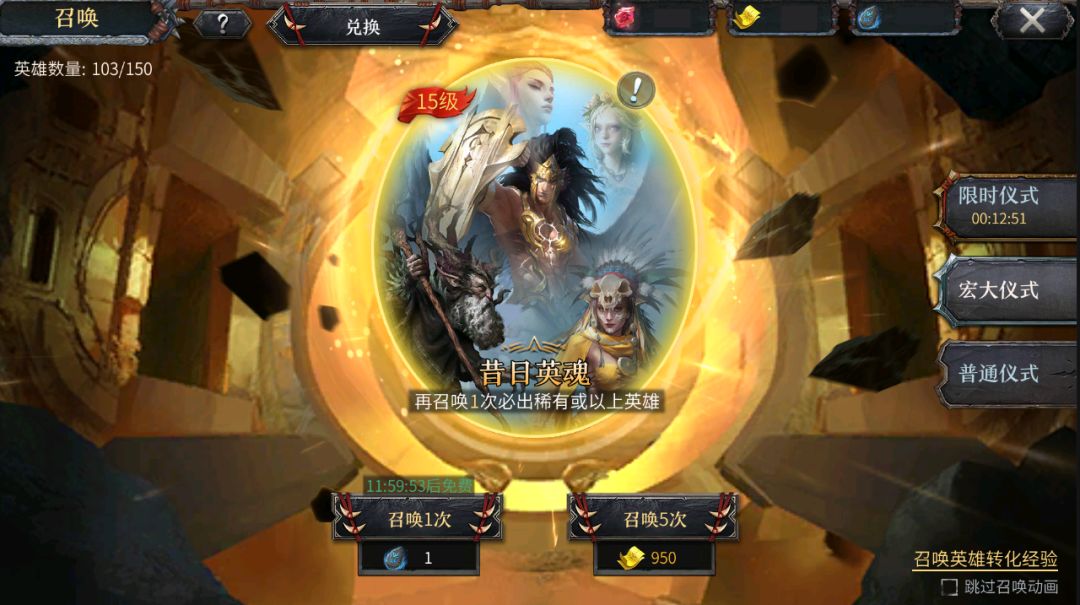 值得一提的是,宏大仪式和限时仪式获得的英雄根据服务器进程会自带初始等级,在前期开荒困难时,通过抽卡获得高等级英雄是不小的提升!