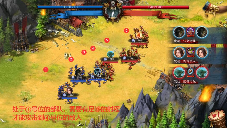 从战斗界面我们可以更直观的看到位置和攻击距离带来的影响。