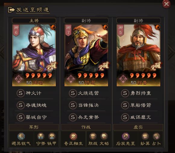 (副将)陆逊,战法搭配:当锋摧决+兵无常势