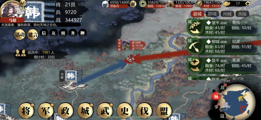 打完150刚好60级,后面每打一个城都会很难了。预备兵不够,资源成长慢是一方面,另一方面除了氪金升星再没有其他成长的空间和资源,除了氪佬,150是个分水岭,可以佛系了。