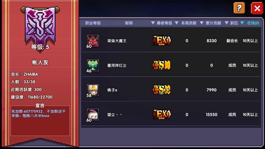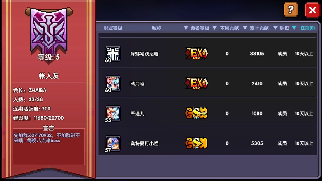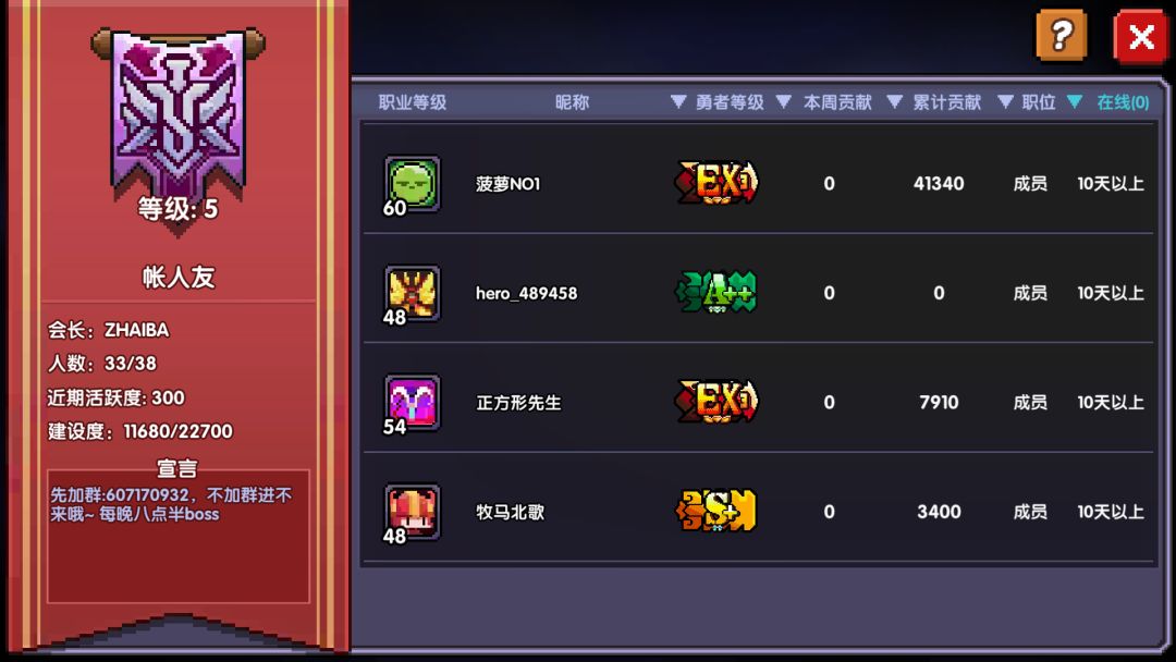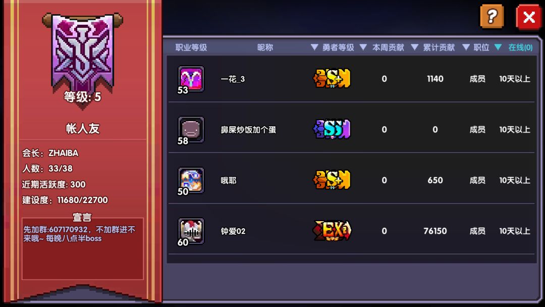 由于是新公会,我们的目标是,疯狂拉萌新,毕竟大佬拉不过来。