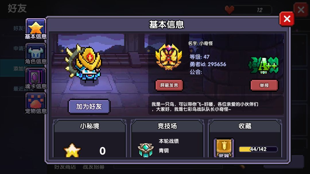 我同意了。公会的名字叫七彩鸟战队。