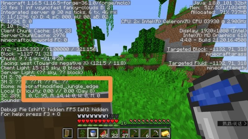 这个种子的丛林边缘变种位置:-1127 71 321(在这么多种子里,我找到这一个还真是幸运)