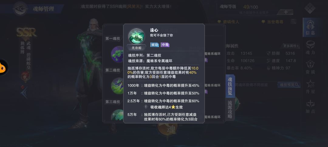 注:火舞魔蛛二技能提速被动同样可以被独孤博吞掉,导致提速失效。