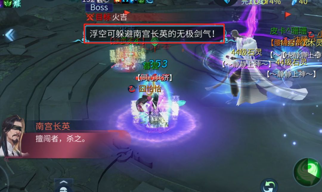boss蓄力释放无极剑气,可以通过被风吹起来躲避伤害。